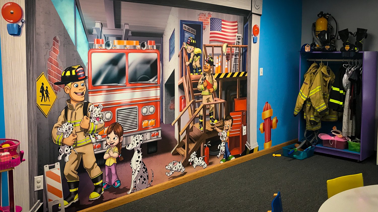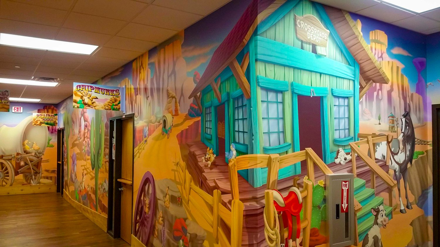 Murals offer massive bang for your buck. They turn plain walls into immersive backdrops that set the scene for your entire theme. And because they’re totally customizable, we can design your mural to fit exactly what you envision—whether it’s an underwater scene with friendly fish, a bustling urban setting, or even a futuristic space station for budding astronauts.