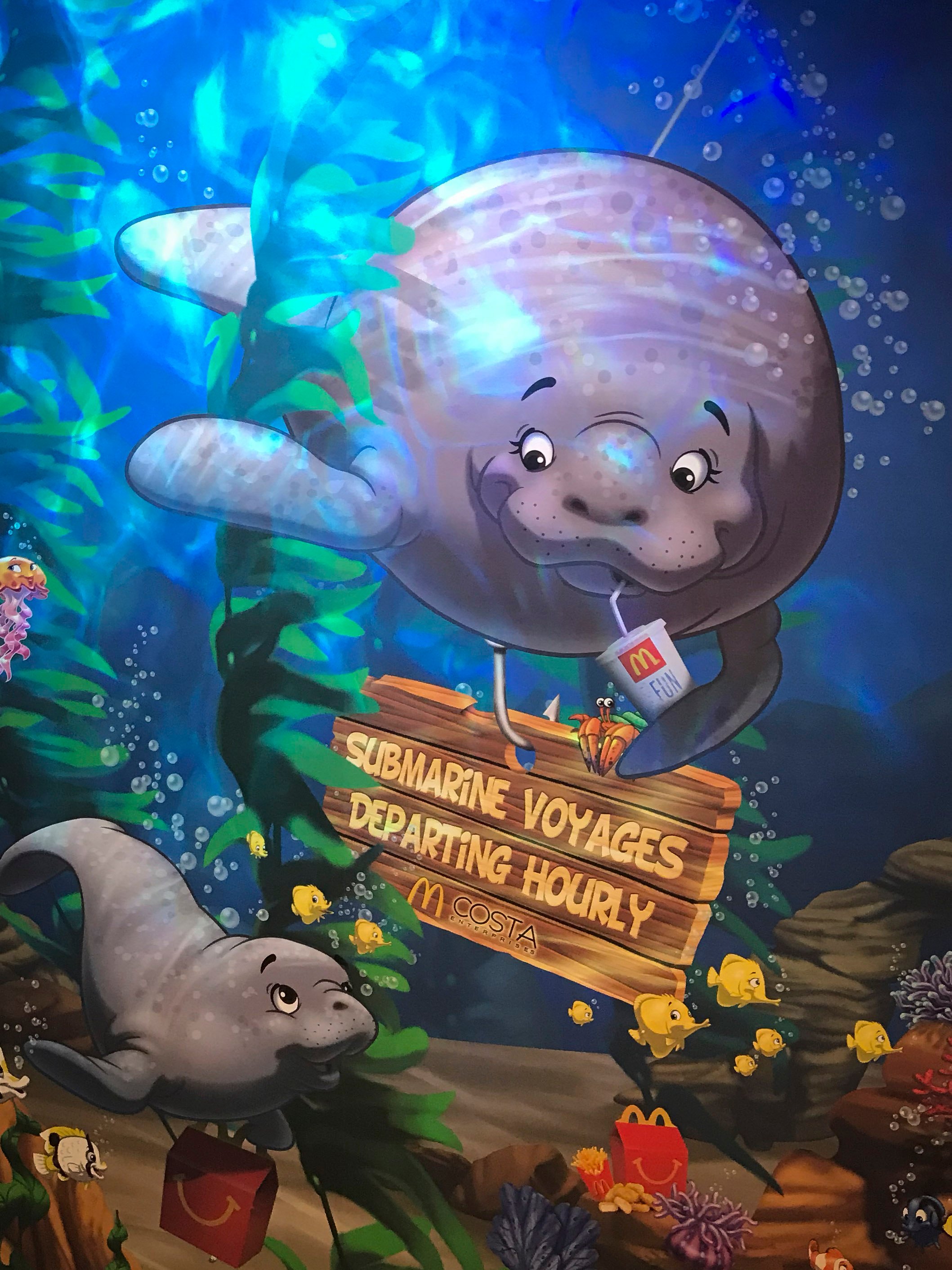 Dive into a completely immersive undersea adventure at these McDonald's locations! The moment you approach the buildings, printed window vinyls provide a sneak peek into the magical world inside. Stepping through the doors, you're surrounded by vibrant marine life, with colorful fish swimming overhead and friendly sea creatures greeting you at every turn.